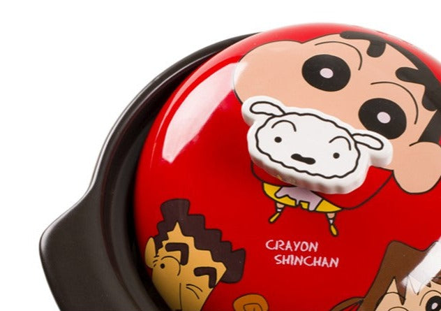 - The body and lid of this beautiful clay casserole are covered in the famous Crayon Shin-Chan cartoon character.